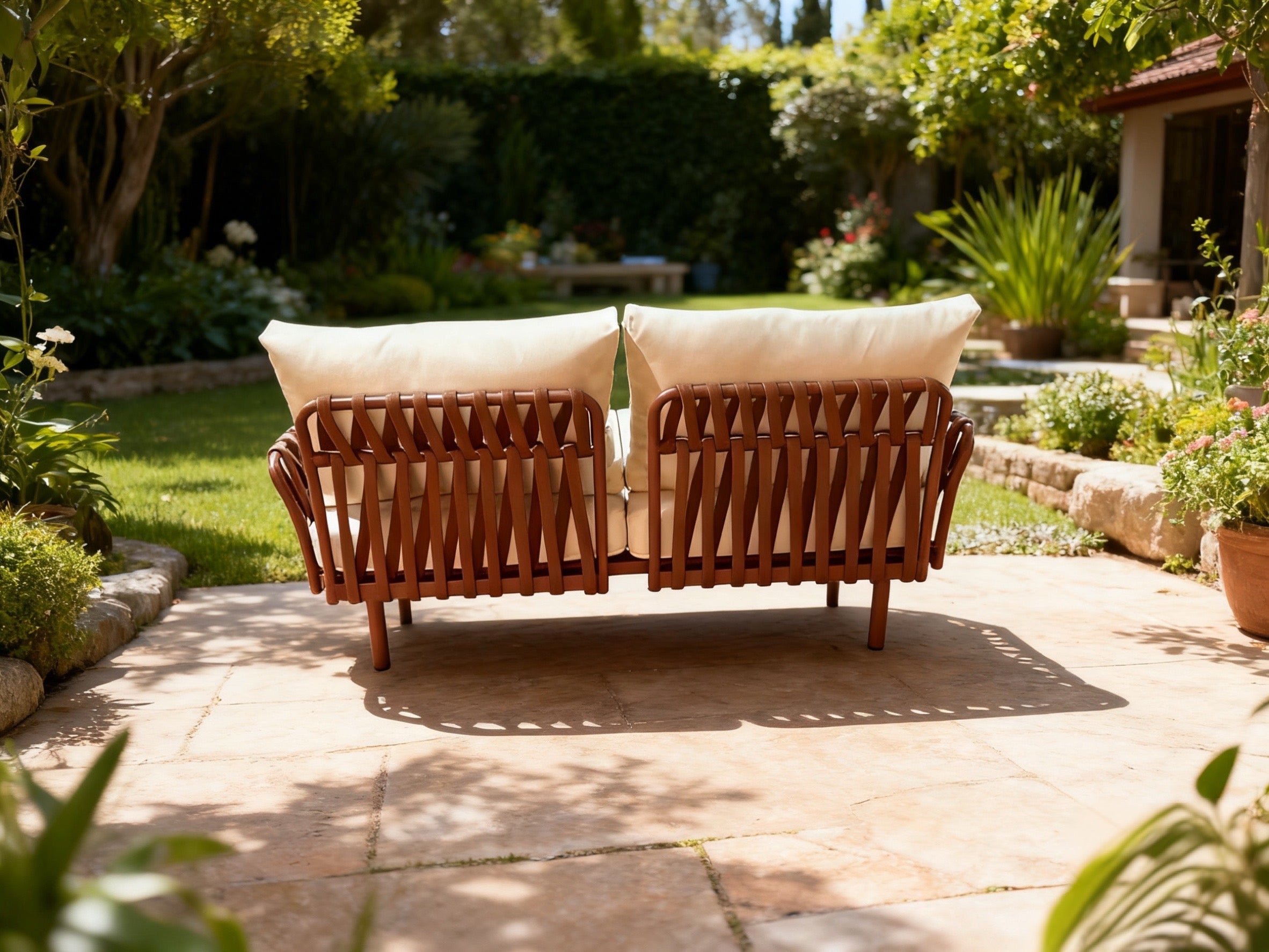 Available in pink & white colour, Size 150*75*70 cm, outdoor lounges for 2 seaters, suitable for family and backyard. SunNova fabric with 5 years fabric warranty.