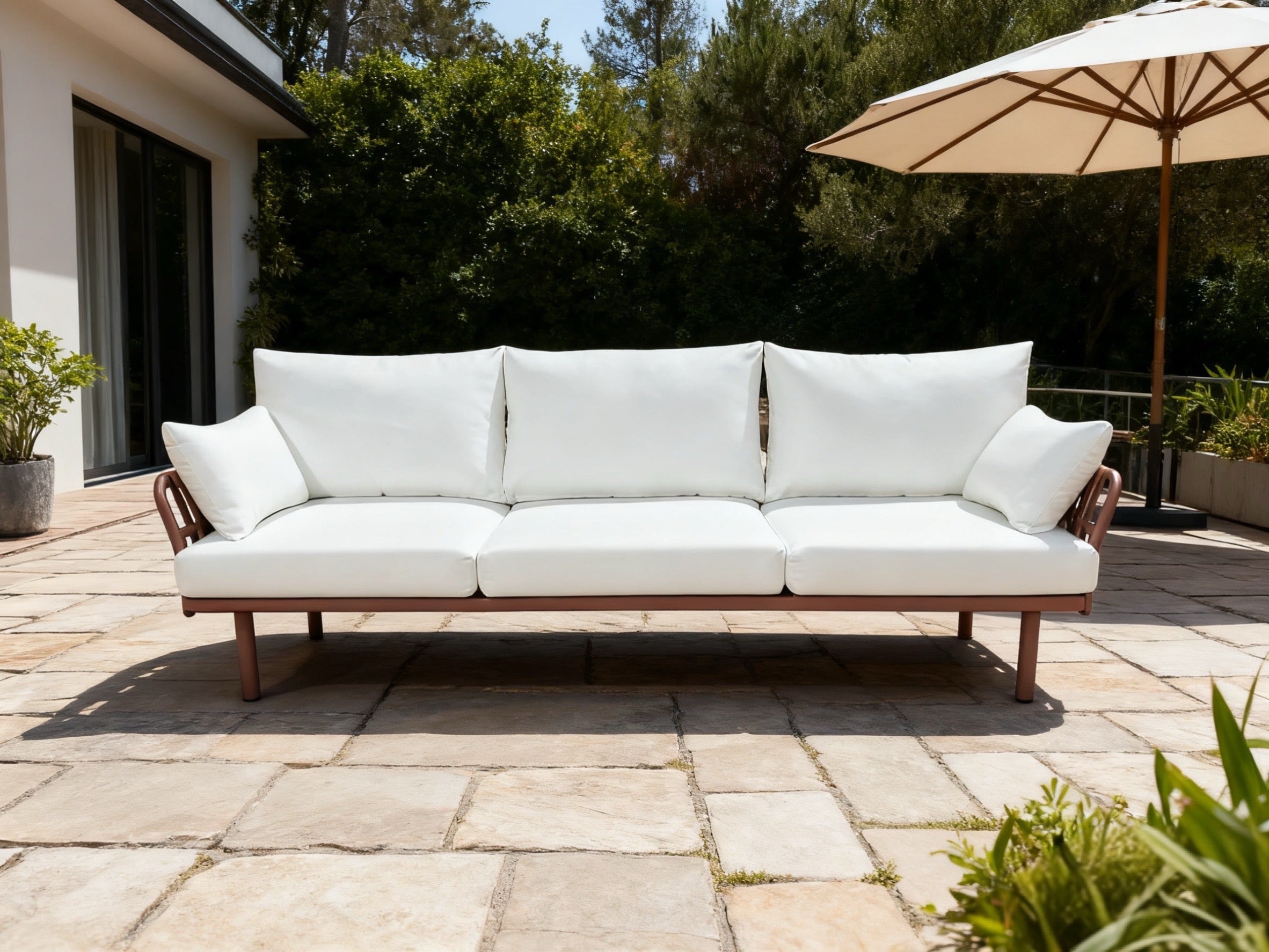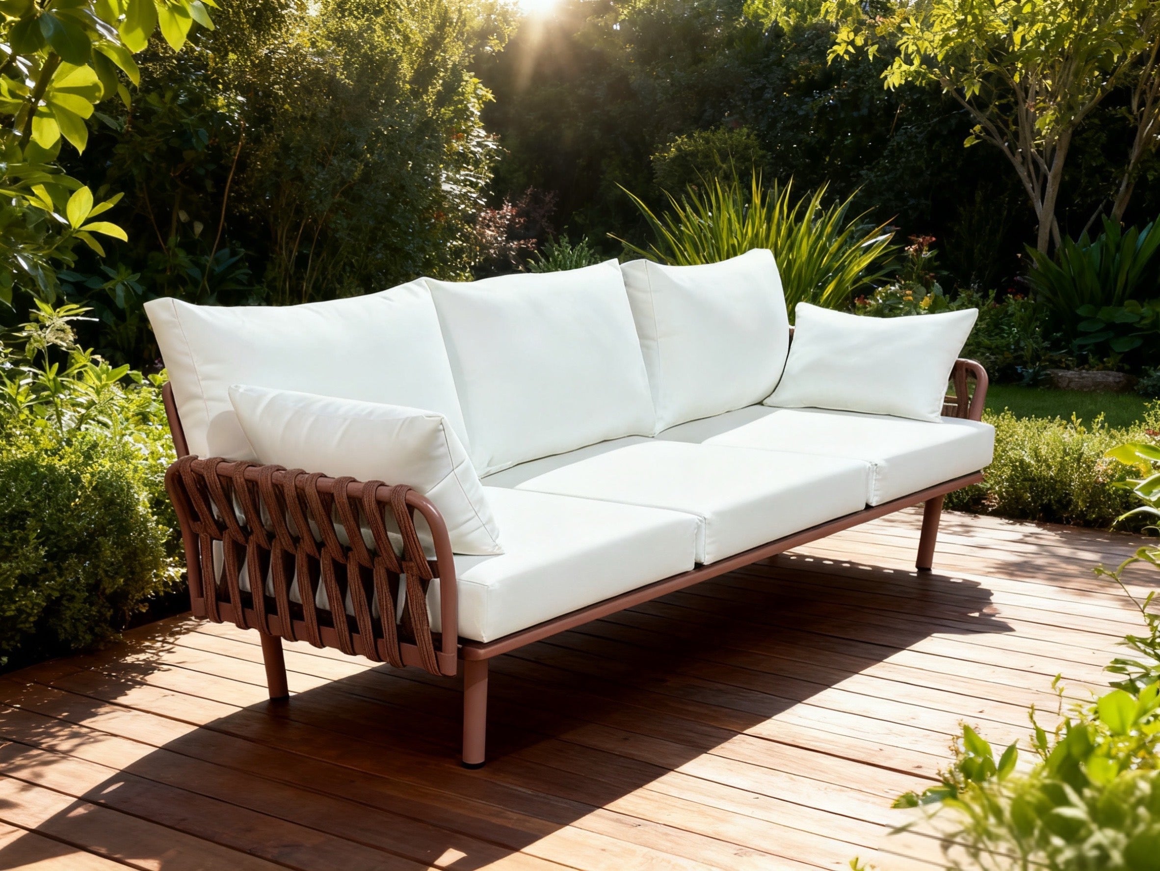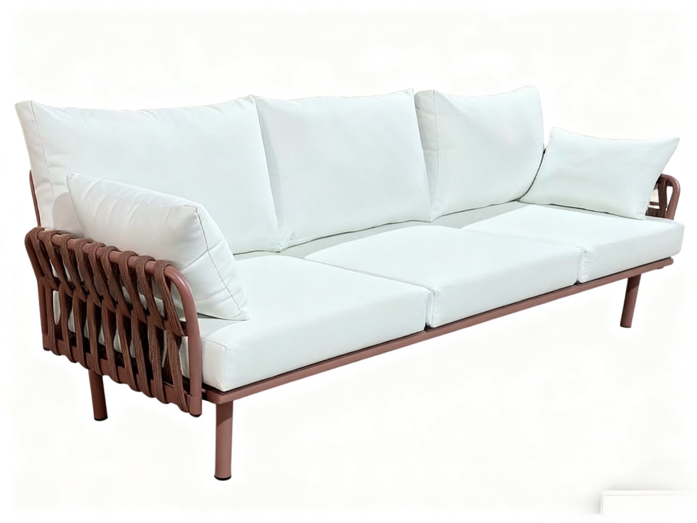 Available in pink & white colour, Size 215*75*70cm, outdoor lounges for 3 seaters, suitable for family and backyard. SunNova fabric with 5 years fabric warranty.